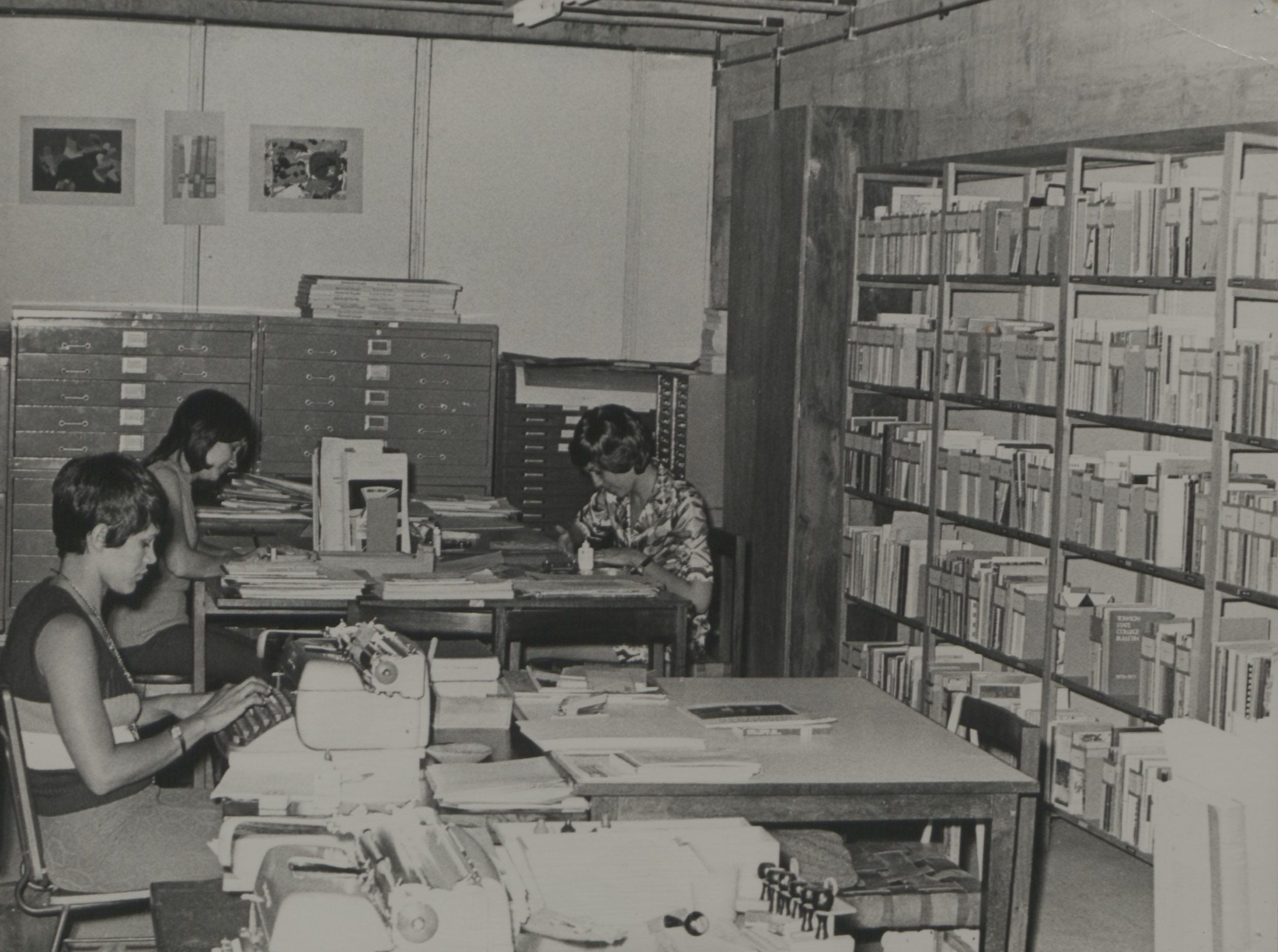 BCE – Semana da Biblioteca – SG-12 – Foto 25Patrícia Arantes5 de janeiro de 2026 Documento BCE – Semana da Biblioteca – SG-12 – Foto 25 Baixar MetadadosTítuloBCE - Semana da Biblioteca - SG-12 - Foto 25AutorSantos, Teobaldo (fotógrafo)DescriçãoColeções Especiais: Obras Raras – funcionárias à mesa trabalhando, ao lado estantes com livros. 13 de Outubro de 1972.TipoFotografiaData(s)1972AssuntoCampus Darcy Ribeiro | Semana da Biblioteca - SG-12 | SG12 | Universidade de BrasíliaFormato1 fotografia (17 x 23 cm)Localização no ArquivoArquivo da Biblioteca Central - Pasta 012 Fotografias na BCEAbrangênciaBrasília, DFTipo de MídiaJPGUnidade responsável na UnBBiblioteca Central
