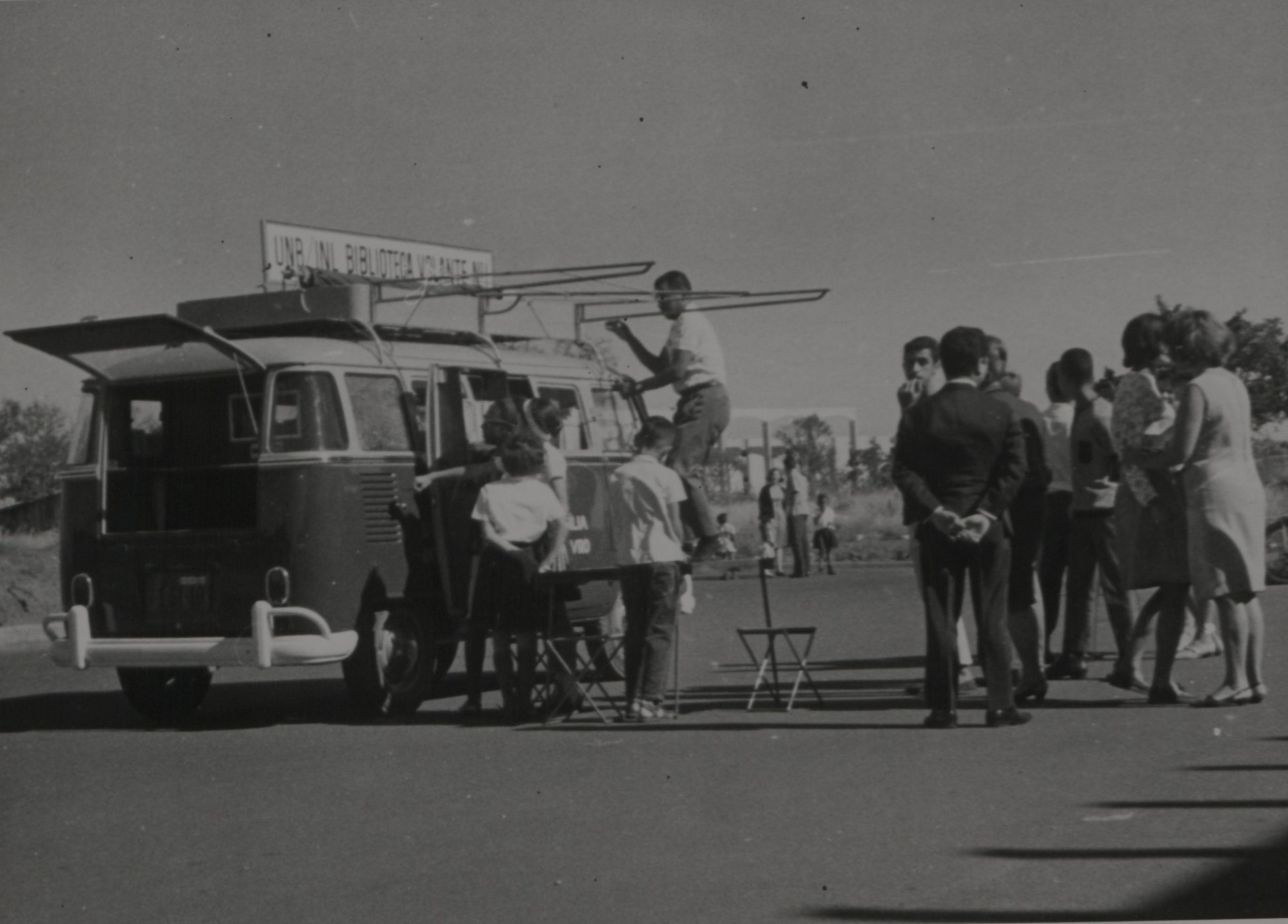 Biblioteca Volante – Foto 15Patrícia Arantes5 de janeiro de 2026 Documento Biblioteca Volante – Foto 15 Baixar MetadadosTítuloBiblioteca Volante - Foto 15AutorSantos, Teobaldo (fotógrafo)DescriçãoBiblioteca Volante em atendimento à população do Distrito Federal, Asa Norte.TipoFotografiaData(s)1966AssuntoAsa Norte | Biblioteca Volante | Brasília (DF) | Universidade de BrasíliaFormato1 fotografia (17 x 23 cm)Localização no ArquivoArquivo da Biblioteca Central - Pasta 012 Fotografias na BCEAbrangênciaBrasília, DFTipo de MídiaJPGUnidade responsável na UnBBiblioteca Central