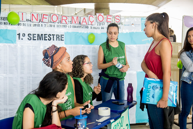 Boas-vindas aos calouros 2018Patrícia Arantes8 de janeiro de 2026 Documento 20180205_registro-academico_betomonteiro-4 Baixar MetadadosTítuloBoas-vindas aos calouros 2018DescriçãoTutoras recepcionam os calouros ingressos na UnB no primeiro semestre de 2018.AutorBeto Monteiro/Secom UnBUnidade responsável na UnBDecanato de Assuntos ComunitáriosData(s)5 de fevereiro de 2018Tipo de MídiaJPGDireitosDireitos reservados a Beto Monteiro/Secom UnBNome da exposiçãoNome da exposição - UnB 60 anos - protagonismo estudantil - BOASVINDAS