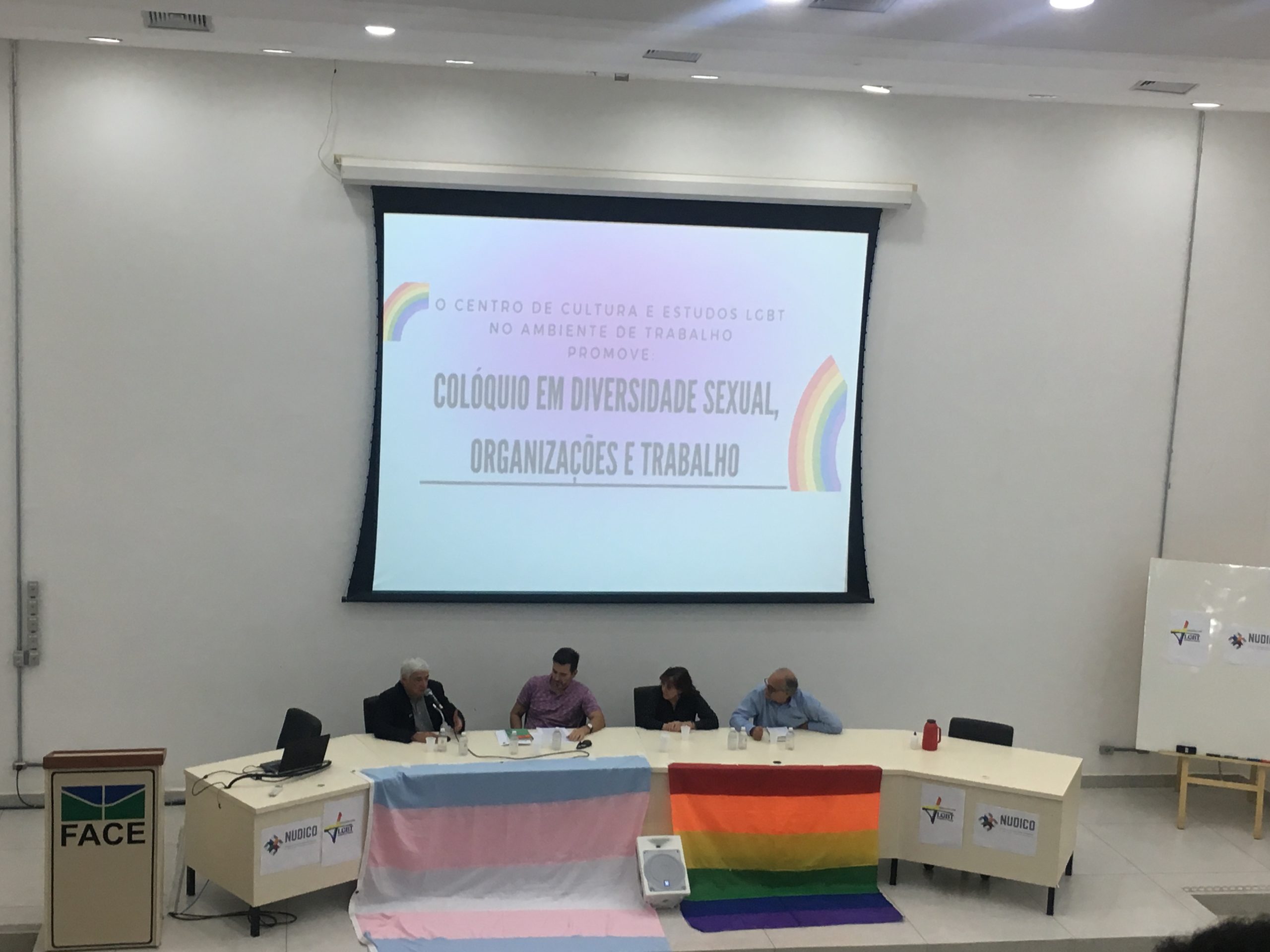 Colóquio realizado no auditório azul da Faculdade de Economia, Administração, Contabilidade e Gestão pública - FACE em 2019, com objetivo de discutir a diversidade sexual, frente ao atual contexto político brasileiro e analisar o contexto organizacional, discutindo-se a inclusão real dos indivíduos LGBTQIA+ no ambiente de trabalho. O evento representou, também, a abertura do Centro de Cultura e Estudos LGBTQIA+ no Ambiente de Trabalho da FACE/UnB, cuja missão é "gerar e promover conhecimento em diversidade sexual, valorizar a cultura LGBTQIA+ e combater qualquer forma de discriminação e homofobia, tanto social quanto no contexto organizacional".