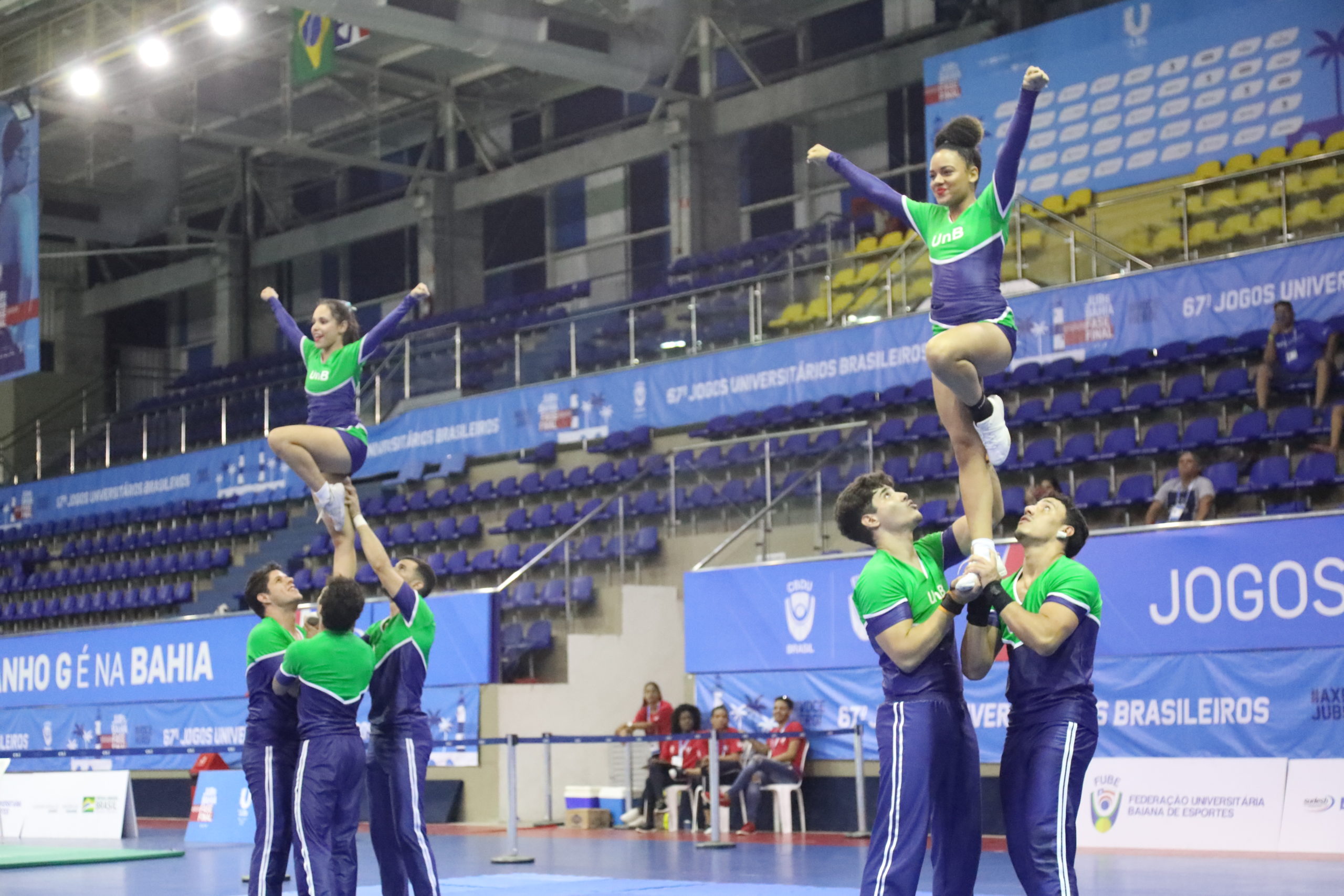 Esporte e Lazer na UnBPatrícia Arantes8 de janeiro de 2026 Documento Esporte e Lazer na UnB 13 Baixar MetadadosTítuloEsporte e Lazer na UnBDescriçãoEquipe de Cheerleading da UnB que estreou nos Jogos Universitários Brasileiros (JUBs), realizados em Salvador, em 2018.AutorJúlio Minasi - CEL/UnBUnidade responsável na UnBDecanato de Assuntos ComunitáriosData(s)2018Tipo de MídiaJPGDireitosJúlio Minasi, CEL/UnBNome da exposiçãoNome da exposição - UnB 60 anos - protagonismo estudantil - DEAC