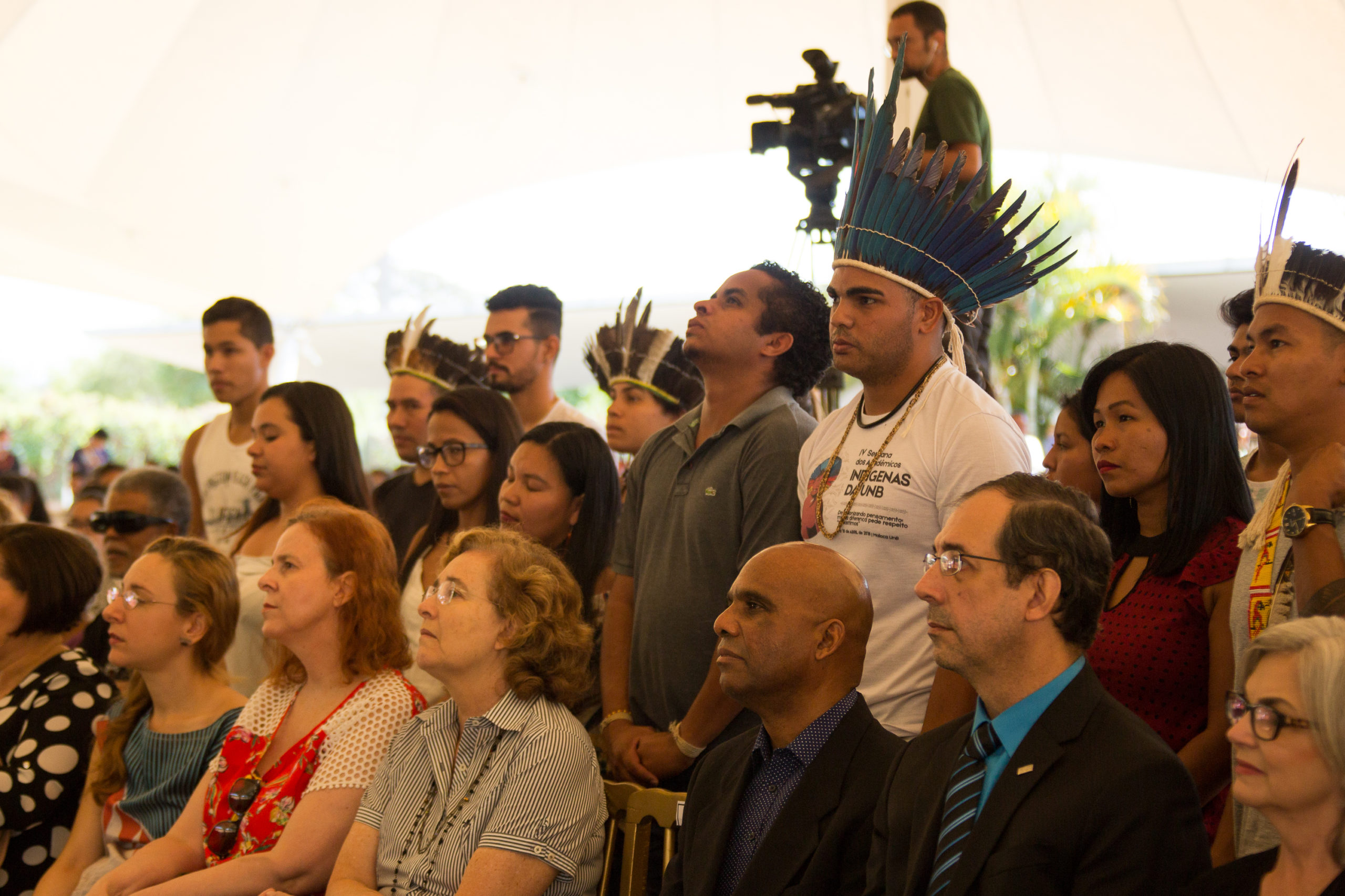 Protagonismo estudantil indígena na UnBPatrícia Arantes8 de janeiro de 2026 Documento 44024592782_9f47d73625_o-scaled Baixar MetadadosTítuloProtagonismo estudantil indígena na UnBDescriçãoEstudantes na cerimônia de boas-vindas aos calouros do semestre 2/2018. O evento contou com participação da líder indígena Célia Xakriabá.AutorRaquel Aviani / Secom UnBUnidade responsável na UnBDecanato de Assuntos ComunitáriosData(s)15 de agosto de 2018Tipo de MídiaJPGDireitosDireitos reservados a Raquel Aviani / Secom UnB.Nome da exposiçãoNome da exposição - UnB 60 anos - protagonismo estudantil - INDIGENAS