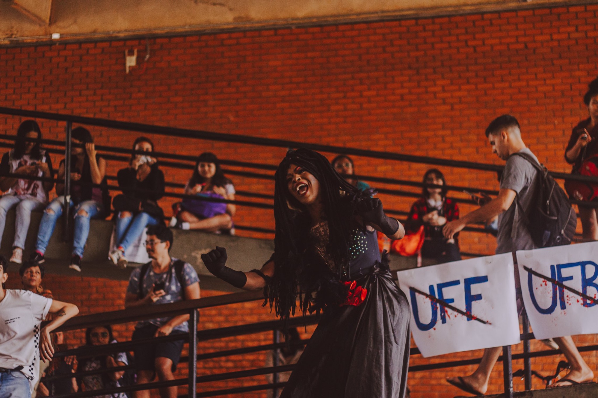 Imagem registra o evento "UnB's Drag Race", realizado em referência ao Dia Internacional de Luta contra a LGBTQIA+fobia, 17 de maio. Inspirado em RuPaul's Drag Race, reality show de competição de talentos Drag Queen lançado em 2009 nos Estados Unidos, a competição ocorreu no Instituto Central de Ciências - ICC - do campus Darcy Ribeiro como parte do calendário "UnB vs LGBTfobia" de 2019.