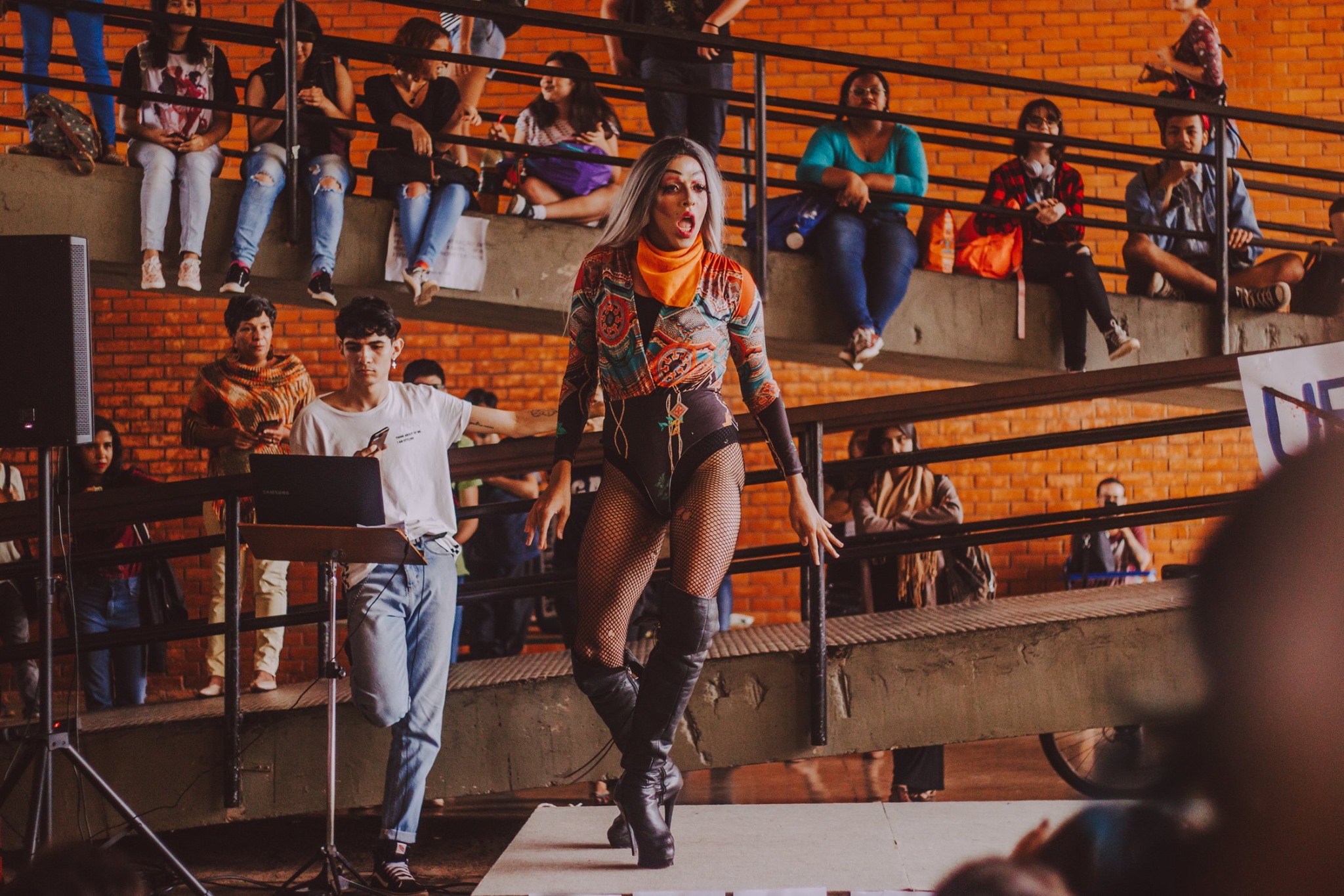 Imagem registra o evento "UnB's Drag Race", realizado em referência ao Dia Internacional de Luta contra a LGBTQIA+fobia, 17 de maio. Inspirado em RuPaul's Drag Race, reality show de competição de talentos Drag Queen lançado em 2009 nos Estados Unidos, a competição ocorreu no Instituto Central de Ciências - ICC - do campus Darcy Ribeiro como parte do calendário "UnB vs LGBTfobia" de 2019.